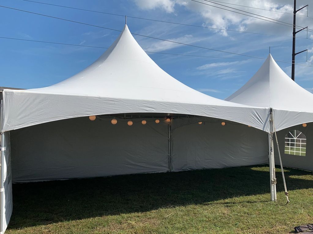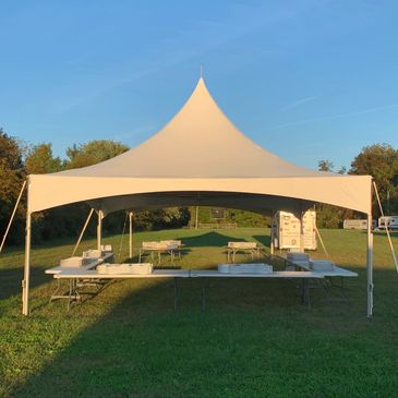 Our Adorable 10X10 Frame Tent (can be used to seat 20 people or as an event station) and Our 20X20 Frame Tent.
